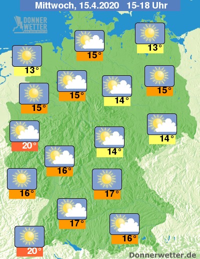 Bis zum frühen Abend ändert sich an den Wetterverhältnissen nur wenig, die Temperaturen steigen jedoch im Laufe des Nachmittags noch leicht an und überschreiten entland des Rheins teilweise die 20 Grad - Marke.