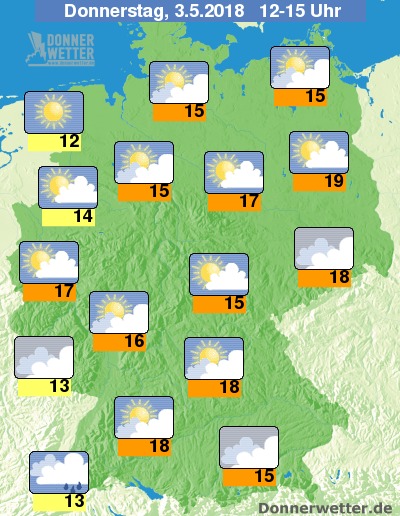 Höchsttemperaturen am Donnerstag Nachmittag