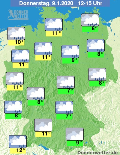 Am frühen Nachmittag präsentiert sich der Himmel wolkenverhangen und grau. Aus den kompakten Schichtwolken fällt zeitweise Regen oder Sprühregen. Dieser kann regional auch intensiver auftreten. Südlich der Donau bleibt es jedoch allgemein niederschlagsfrei.