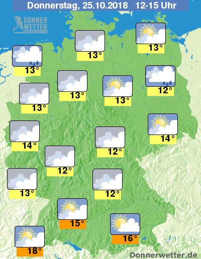 Am frühen Nachmittag dominieren die Wolken, größere Aufheiterungen gibt es im Nordosten und ganz im Süden. Etwas Regen oder örtliche Schauer treten im Norden auf. Die Temperaturen bewegen sich zwischen 12 und 15 Grad, im Süden sind Werte von über 15 Grad möglich.