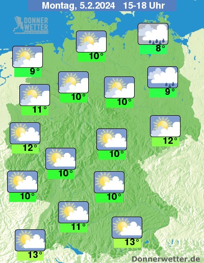 Die Temperaturen erreichen am Nachmittag Höchstwerte um 8 Grad in Küstennähe und 13 Grad am Alpenrand.
