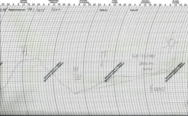 Unser Schrieb zeigt den Luftdruckverlauf zwischen Dienstag und Sonntag letzter Woche an unserer Wetterstation in Bonn.