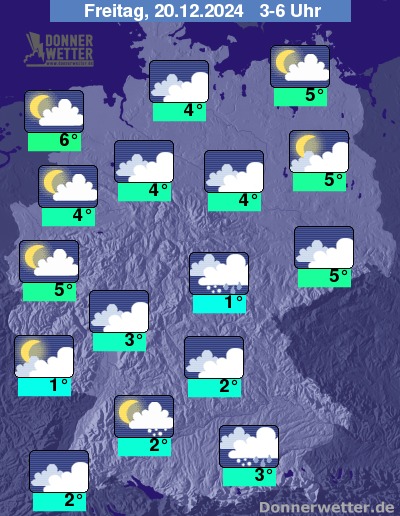 In der Nacht zum Freitag setzen sich Niederschläge im Süden, vor allem am Alpenrand, fort. In den übrigen Landesteilen sind bei wechselnder oder starker Bewölkung nur vereinzelt Regen- oder Schneeregen-, in höheren Lagen Schneeschauer zu erwarten. Auf den Gipfeln und an der See bleibt es stürmisch.