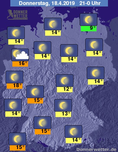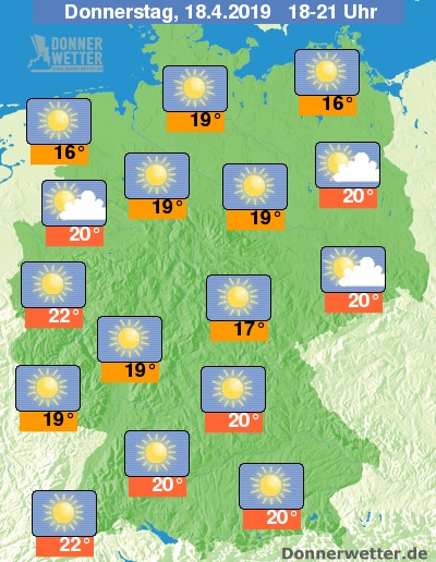 Die Temperaturen liegen vor der Dämmerung noch bei angenehmen 18 bis 22 Grad. Etwas kühler bleibt es an den Küsten, sowie in den Mittelgebirgen.