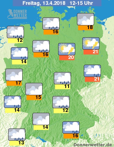 Die Höchstwerte liegen dazu zwischen kühlen 11 Grad im Thüringer Bergland und leicht schwülen 20 Grad im Großraum Berlin.