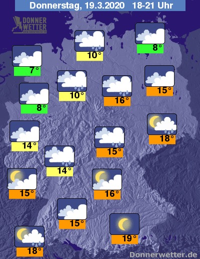 Heute Nachmittag ist es im Süden oft heiter bis sonnig, in der breiten Landesmitte hingegen überwiegend wechselnd bis stark bewölkt, dabei bleibt es bis auf wenige Ausnahmen weitgehend trocken. Im Norden ist es verbreitet dicht bewölkt und es fällt gebietsweise Regen. Die Temperatur steigt auf nasskalte 7 Grad im nördlichen Emsland und bis auf sehr frühlingshafte 18 Grad in München.