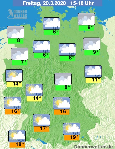 Im Verlaufe des Nachmittags nehmen Schauer und örtliche Gewitter im Süden zu, sonst ändert sich bis zum frühen Abend sowohl beim Wetter, als auch bei den Temperaturen wenig.