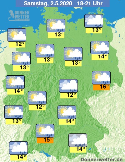 Heute Abend ist es wechselnd bis stark bewölkt, dabei bilden sich zeitweise Schauer und örtlich auch Gewitter. Die Temperatur liegt bei 12 Grad am Taunus und bis 16 Grad in der Lausitz.