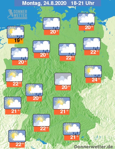 Temperaturrückgang am späteren Abend auf Werte um 19 bis 15 Grad.