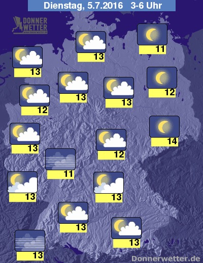 Meist trockene Nacht bei Tiefstwerten um 11 Grad C.