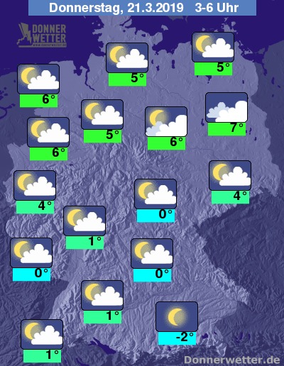 In der ersten Nachthälfte bleibt die Wolkendecke über dem Norden zunächst noch häufig geschlossen, im Süden funkeln häufig die Sterne. Im Nachtverlauf bestimmen dann zumeist lockere Wolkenfelder das Himmelsbild über der Republik. Es bleibt trocken.
