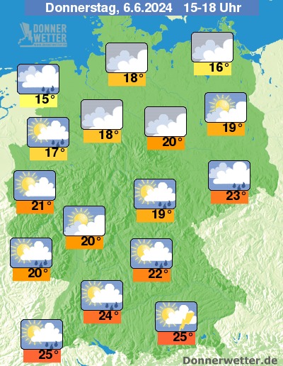 Am Nachmittag zeigt sich der Himmel verbreitet heiter oder es ist wechselnd bewölkt. Im Nordwesten, der Südhälfte sowie im östlichen Bergland muss in den nächsten Stunden mit einzelnen Schauern und lokalen Gewittern, örtlich auch Starkregen möglich, gerechnet werden, in den übrigen Landesteilen bleibt es meist trocken.