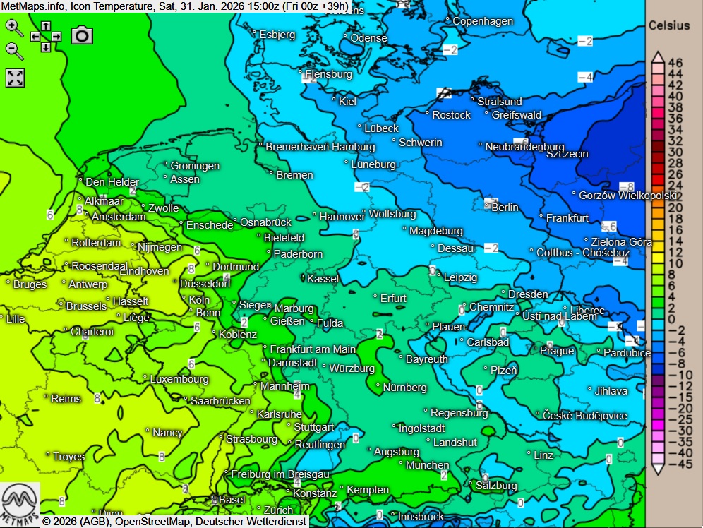 Höchstwerte am Samstag um -4 bis 10 Grad.
