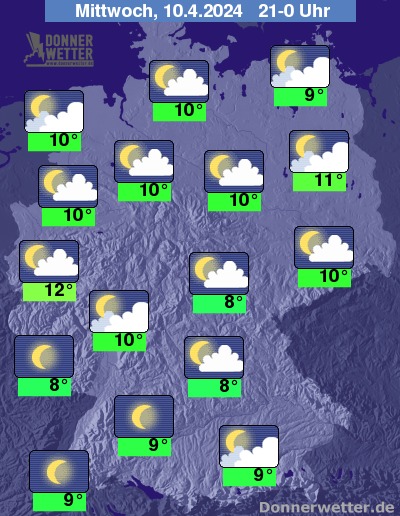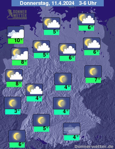 In der Nacht auf Donnerstag nimmt die Bewölkung im Nordwesten des Landes zu, es bleibt aber meist trocken. In den übrigen Landesteilen ist der Himmel sternenklar oder nur gering bewölkt und es bleibt trocken.