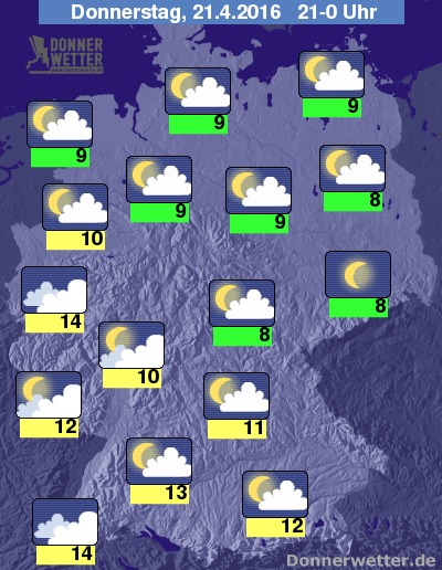 Heute Abend ist es über der Südwesthälfte der Republik wechselnd bis stark bewölkt und nur im äußersten Südwesten sind einige Tropfen möglich. Über dem Norden und Osten ist der Himmel meist leicht bewölkt, gebietsweise auch sternenklar, dazu bleibt es trocken. Die Abendtemperatur liegt bei 14 Grad in Köln und um 8 Grad in Leipzig.