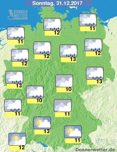 Am Sonntag kann sich im Süden häufig die Sonne zeigen, dabei bleibt es hier trocken. Im übrigen Bundesgebiet ziehen dichte Wolken und teils kräftiger Regen durch. Die Temperatur steigt auf 10 bis 13 Grad. Im Norden und Westen weht ein teils stürmischer Wind. An Nord- und Ostsee herrscht teils schwerer Sturm.