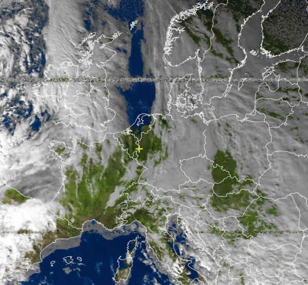 Das Satellitenfoto von heute Nachmittag zeigt ein überwiegend bewölktes bzw. bedecktes Deutschland. Im Westen des Landes konnte sich dagegen die Sonne schon verbreitet zu Beginn des Tages durchsetzen und hier herrscht auch am späten Nachmittag bis zum Sonnenuntergang sonniges und trockenes Herbstwetter.