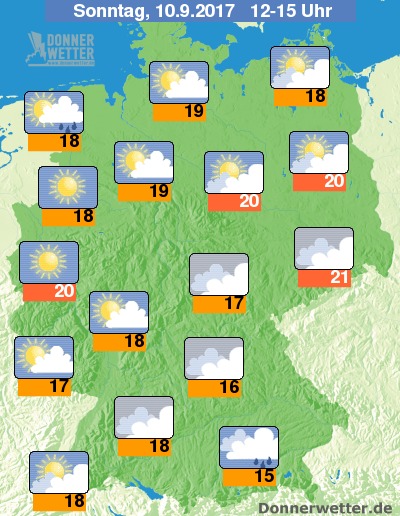 Die Temperaturen zeigen sich durchaus draußentauglich und erreichen in Schauern um 15 Grad C am Alpenrand und um 20 Grad C in Brandenburg.