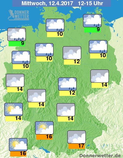 Am Mittwochnachmittag zeigt sich der Himmel über weiten Landesteilen dicht bewölkt oder bedeckt, längere freundlichere Abschnitte sind meist nur im Südwesten zu erwarten. Vorwiegend in der Nordhälfte kann zudem ab und an auch mal ein Schauer fallen.