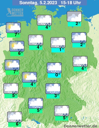 In den Nachmittags- und Abendstunden zeigt sich der Himmel über der West- und später auch Nordosthälfte wechselnd, sonst meist stark bewölkt oder es ist bedeckt. Dabei muss verbreitet mit Niederschlägen gerechnet werden, die oberhalb von 200 bis 400 m, im Osten bis ins Flachland, als Schnee fallen. Dabei weht vor allem im Westen und Nordwesten ein böiger, an der Nordseeküste auch stürmischer Wind aus Nordwest.
