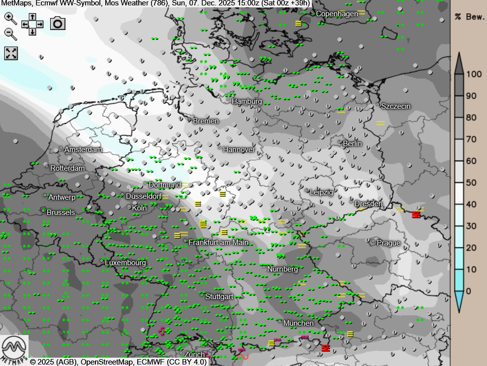 Die Temperaturen erreichen am Höchstwerte um 6 Grad in Dresden und um 13 Grad im Rheinland.