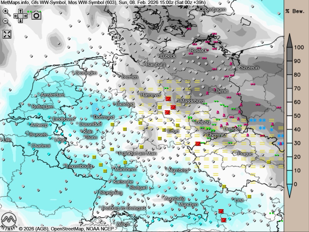In den übrigen Landesteilen bleibt es am Nachmittag stark bewölkt oder es ist nebelig-trüb. Die besten Chancen auf größere Auflockerungen bestehen im Westen und Südwesten.