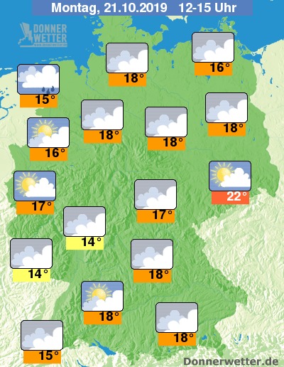 Die Temperaturen steigen im Nachmittagsverlauf auf Höchstwerte um 14 Grad im Pfälzer Wald und um 22 Grad in Dresden.