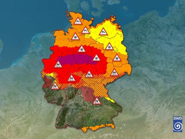 Heute bleibt es über der Nordhälfte bedeckt und es fällt immer wieder, zum Teil kräftiger Schnee, dabei weht ein oft stürmischer Wind. Zur Landesmitte hin fällt verbreitet Regen, teils auch Schneeregen oder Eisregen. Es besteht erhöhte Glättegefahr! Im Süden ist es bedeckt und es fällt gebietsweise Regen. Die Temperatur steigt auf eiskalte -5 Grad im Berliner Umland und bis zu 11 Grad im Raum Stuttgart.