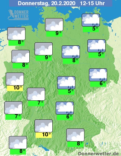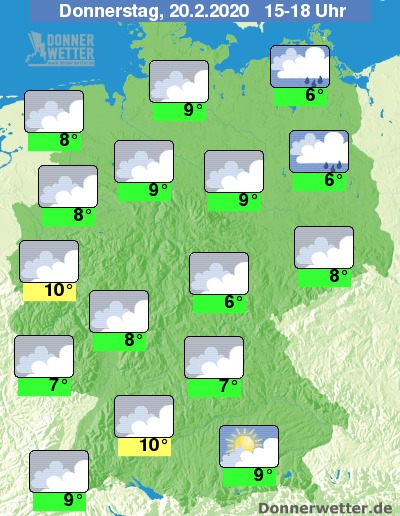 Bis zum frühen Abend regnet es im Nordosten noch etwas. Sonst fällt nur örtlich etwas Sprühregen. Vor allem im Süden, sowie im Lee - Bereich von Mittelgebirgen kann die Wolkendecke auch mal auflockern und einigen Sonnenstrahlen Platz bieten. Am Abend zieht allerdings von Benelux neuer Regen einer Kaltfront heran in Verbindung mit stürmischen Windböen und örtlichen Sturmböen.