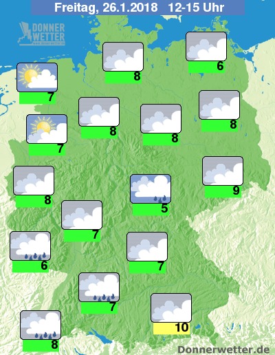 Dabei bleibt es insgesamt etwas kühler als an den vorangegangenen Tagen, dennoch sind die Temperaturen für die Jahreszeit nach wie vor ungewöhnlich mild. Verbreitet liegen die Höchsttemperaturen am Nachmittag bei Werten um die 8 Grad, in der Region München sind erneut zweistellige Höchstwerte möglich.
