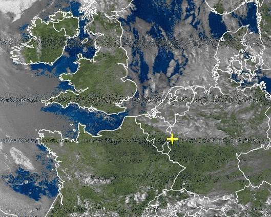 Wolken über Norddeutschland zeigt das aktuelle Satellitenbild. Süddeutschland ist wolkenlos oder gering bewölkt.