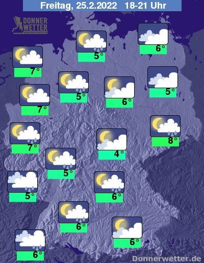 Heute Abend lockert es über der Nordwesthälfte Deutschlands vielerorts auf und es bilden sich kaum noch Schauer. Im Osten und Süden ziehen jedoch überwiegend dichte Wolken durch und es können sich gebietsweise Regen-, Schneeregen-, Schnee- oder Graupelschauer bilden. Die Temperatur liegt bei 4 Grad in Erfurt und etwa 8 Grad in Dresden.