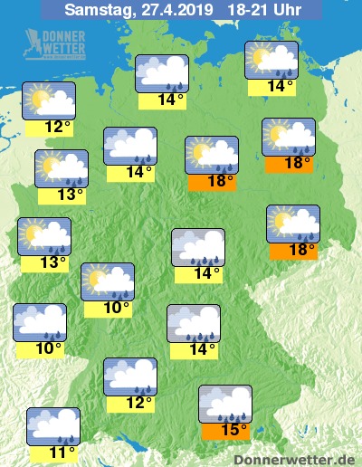 Heute Abend ist es größtenteils stark, gebietsweise auch etwas aufgelockert bewölkt, es können sich wiederholt, teils kräftige und gewittrige Schauer bilden. Die Temperatur liegt bei 10 Grad am Pfälzer Wald und bis 18 Grad in Berlin.