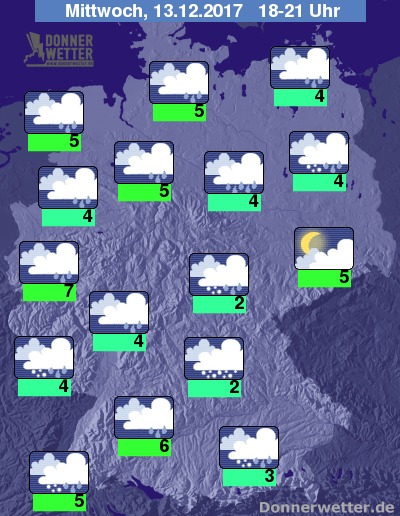 In der Nacht zum Donnerstag bleibt es zum Großteil bei dichten Wolken, die häufig Regen, teils auch Schneeregen bringen. Im weiteren Verlauf lockert und klart der Himmel im Nordwesten und Westen auf, dazu bleibt es hier dann trocken. Die Tiefstwerte liegen bei 7 bis 3 Grad.