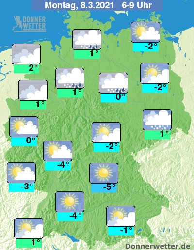 Die neue Woche startet abseits einzelner Auflockerungen im Nordosten in der Nordhälfte meist stark bewölkt oder bedeckt. Zwischen Weser und Elbe sowie im Erzgebirge kann dabei auch immer wieder etwas Regen, Schneeregen oder Schnee fallen. Im Süden des Landes ist es teils heiter bis wolkig, teils sonnig und es bleibt trocken.