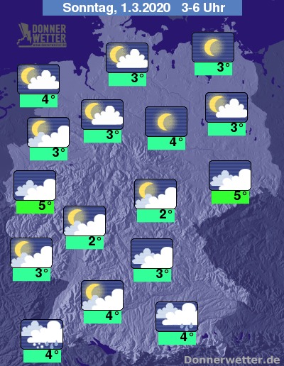 Am Sonntag zieht aufgelockerte bis starke Bewölkung durch, dabei bilden sich aber nur örtliche Schauer. Die Temperatur steigt auf 6 Grad im Eichsfeld und bis 10 Grad in der Kölner Bucht. An der Nordsee weht weiterhin ein oft stürmischer Wind.