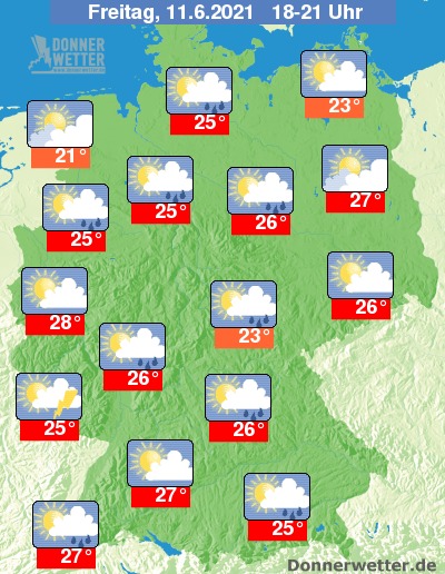 In den Abendstunden ist der Himmel teils heiter, teils locker, über der Nordhälfte auch aufgelockert bewölkt. Vor allem im norddeutschen Tiefland sind am Abend noch einzelne Schauer möglich, im Süden kann es auch noch lokale Gewitter geben. Bis Mitternacht nimmt die Schaueraktivität dann ab, so dass es nur noch im äußersten Südosten und am Alpenrand etwas tröpfeln kann.
