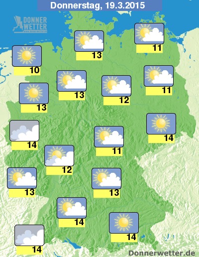 Am Donnerstag ist es häufig heiter und besonders im Nordwesten, Osten und im Südosten von Deutschland ist es auch verbreitet sonnig. Zeitweise dichtere Wolken ziehen jedoch in den Südwesten und teils auch in den Westen der Republik, dabei bleibt es aber trocken. Die Höchstwerte liegen bei 10 Grad in Ostfriesland und um 14 Grad im Oberrheingraben.