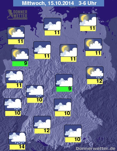 Der morgige Mittwoch bringt vor allem vom Nordosten, über den Osten bis in den Südosten Deutschlands noch verbreitet dichte Wolken und zeitweiligen Regen, sonst ist es aber auch oft heiter oder locker bewölkt. Von Südwesten her nimmt die Bewölkung am Nachmittag jedoch kontinuierlich zu und gegen Abend zieht hier Regen auf, der im Laufe des Abends noch bis zur einer Linie vom Rheinland bis zum Allgäu zieht. Die Temperatur steigt auf etwa 15 Grad direkt an der See und bis 20 Grad in Schwaben.