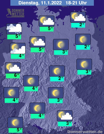 Heute Abend ziehen rund um die Nordsee dichte Wolken auf, die hier gebietsweise Regen bringen. Südöstlich davon anschließend ist es oft locker bis aufgelockert bewölkt, aber meist trocken. Im großen Rest der Republik zeigt sich der Himmel verbreitet sternenklar, dazu bleibt es trocken. Die Temperatur liegt bei 2 Grad in Berlin und 6 Grad in Köln.