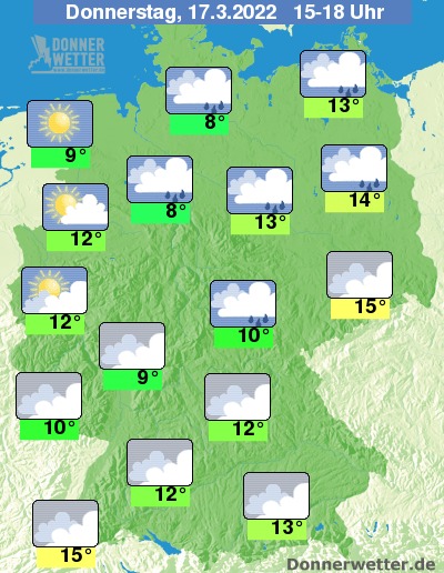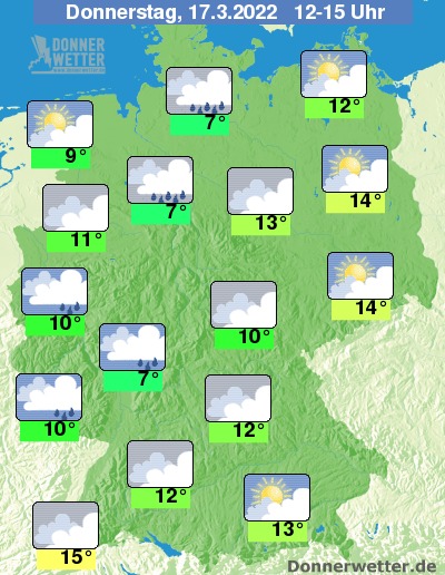 In den Nachmittgsstunden zieht das Regenband, welches regional weiterhin Blutregen im Gepäck hat, von Nordwesten über die Mitte bis in den Nordosten des Landes. Dahinter heitert der Himmel im Nachmittagsverlauf häufiger auf, sonst bleibt es überwiegend stark bewölkt oder bedeckt.