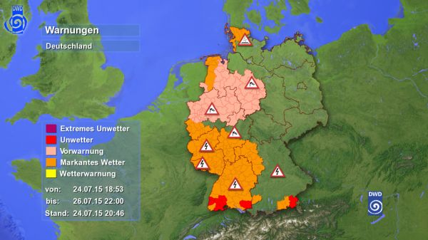 Die aktuellen Unwetterwarnungen erhalten sich auch auf unserer Unwetterseite!