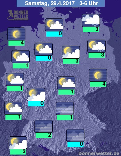 In der Nacht zum Samstag klingen die Niederschläge im Südosten ab und der Himmel lockert und klart hier, wie auch im übrigen Land, verbreitet auf. Von Berlin bis Vorpommern halten sich hingegen auch oft dichte Wolken, die für einzelne Schauer sorgen können, sonst bleibt es jedoch trocken. Die Temperatur sinkt auf 4 bis 0 Grad.