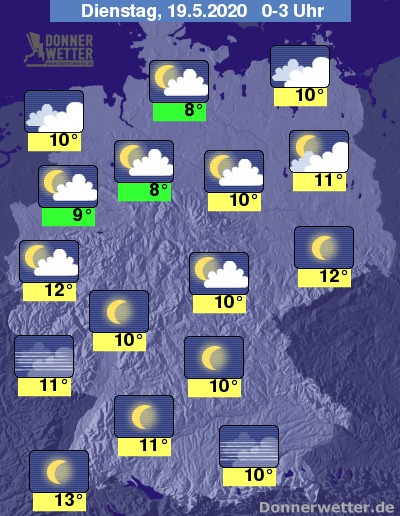 In der Nacht bleibt die Wolkendecke in Küstennähe geschlossen, sonst ist es über den Nordhälfte locker oder aufgelockert bewölkt. Im Süden überwiegt in den kommenden Stunden ein Mix aus funkelnden Sternen und regionalen Nebelfeldern. Es bleibt trocken.+