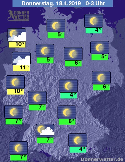 In der Nacht auf Donnerstag zeigt sich der Himmel über weiten Teilen des Landes sternenklar, lockere oder aufgelockerte Bewölkung ist meist nur entlang des Rheins zu erwarten. Im Alpenvorland kann sich gebietsweise Nebel bilden. Es bleibt trocken.