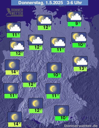 Die Temperaturen gehen in den frühen Morgenstunden zurück auf Werte um 14 bis 9 Grad.