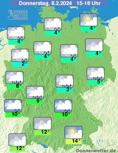 Die Temperaturen erreichen am Nachmittag Werte um 2 Grad im Münsterland und sehr milde 14 Grad am Alpenrand.