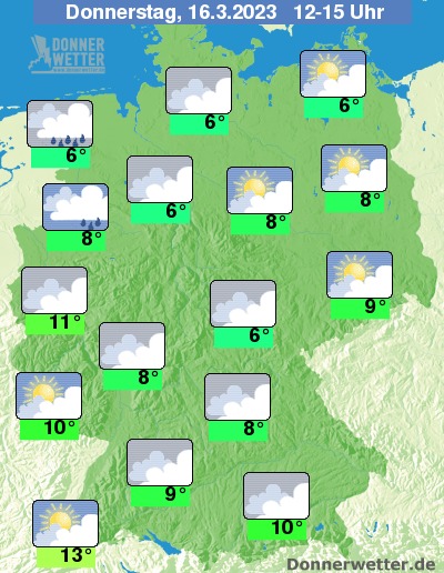 Heute Nachmittag ziehen überwiegend dichte Wolken durch. Auflockerungen sind hier und da im Südwesten, Nordosten und im Osten der Republik möglich. Im Nordwesten fällt gebietsweise Regen, sonst bleibt es weitgehend trocken bei 6 Grad in Hamburg und bis 13 Grad in Freiburg.