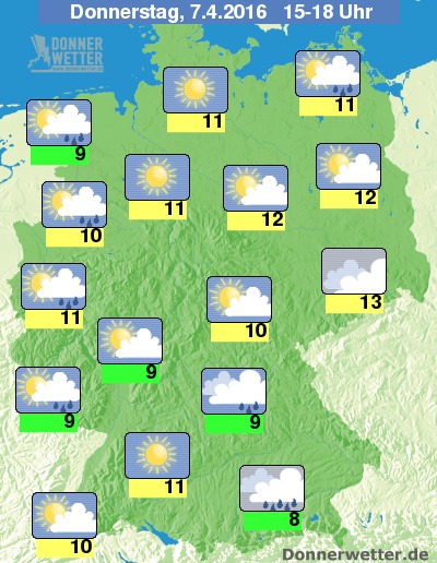 Heute Nachmittag halten sich im Süden oft dichte Wolken, dazu fällt gebietsweise Regen, in den anderen Landesteilen ist es zum Teil heiter bis sonnig, teilweise ziehen aber auch hier mal dichte Wolken durch, dabei sind einzelne Schauer möglich. Die Temperatur steigt auf 9 Grad in Mittelfranken und bis 13 Grad in der Lausitz.