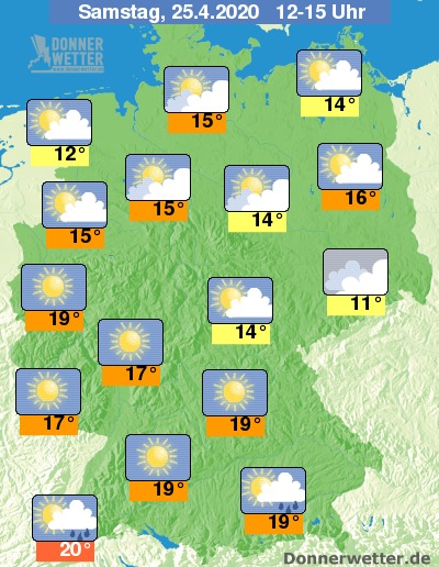 Heute Nachmittag präsentiert sich das Wetter oft heiter oder sonnig, gebietsweise ist es aber auch stark bewölkt. Am Alpenrand bilden sich örtliche Schauer, dagegen bleibt es im übrigen Bundesgebiet weitgehend trocken. Die Temperatur steigt auf teils nur 12 Grad an der Nordsee und etwa 20 Grad im Oberrheingraben.